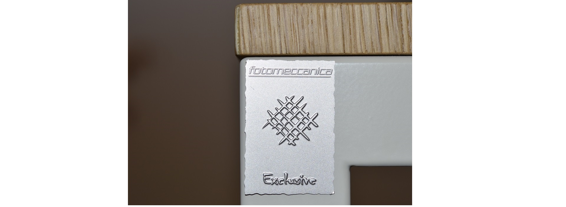 Fotomeccanica has been operating in the furniture industry as a support for the main factories, by realising metallic, self-adhesive, customised brand labels. We have a wide variety of metal materials and high strength stickers, mainly used on laminated, veneer, solid wood, leather and synthetic fabric. We introduced “extra” sheet formats that allow to work on an engraved or pierced surface of 480x2800 mm. The size is calculated depending on the design.